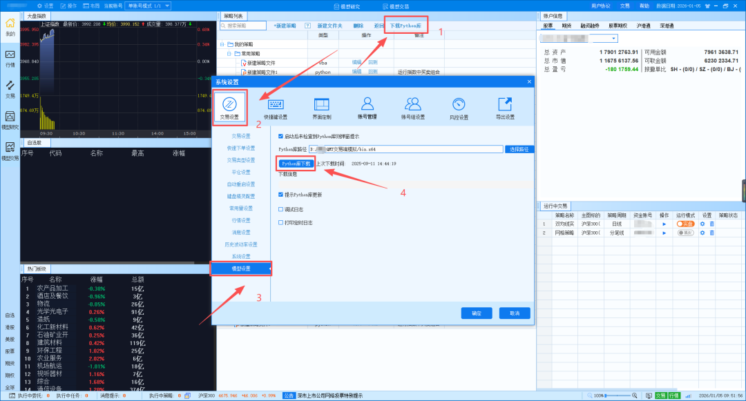 登录后,在首页显著位置找到【下载 Python 库】按钮(不同券商版本位置略有差异,通常在 “系统设置” 或 “工具” 模块附近);