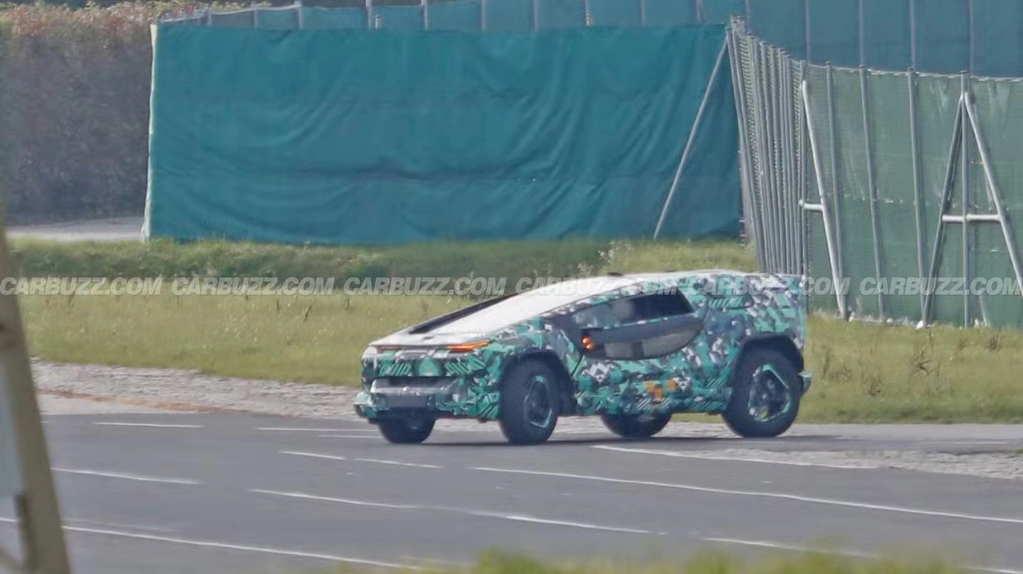外观方面,本次抓拍的路测图显示这款原型车采用极度夸张的“楔形设计”,整体风格酷似20世纪90年代的科幻电影道具车。