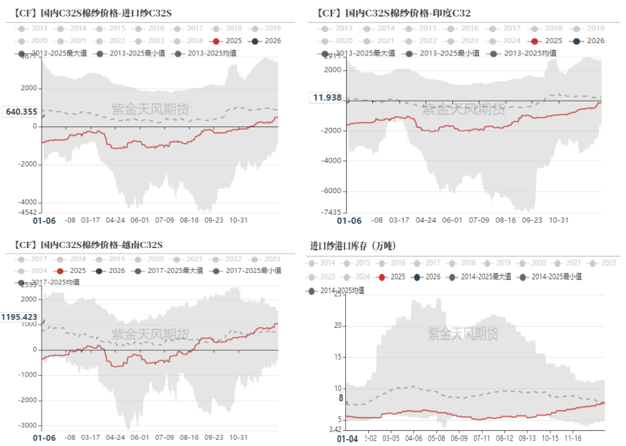 短期内,在内外价差收敛之前,进口纱的价格优势窗口将持续。在2026年3月左右,可能面临价差优势消退。