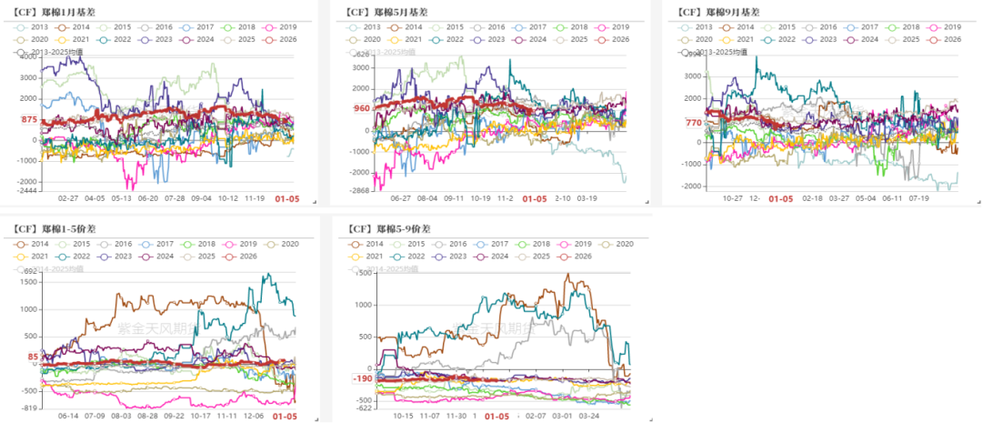 现货:中性 现货交投一般,纺企刚需采购维持,2025/26南疆机采3130/30B/杂3.5内主流销售基差多在CF01+1000及以上,少量在850-950区间,疆内自提。