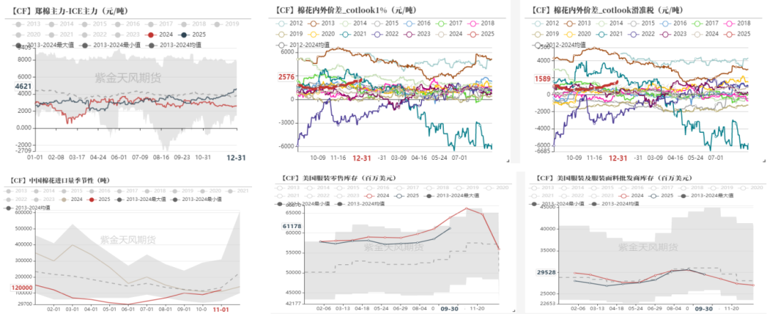 海外美棉的采购节奏尚未启动,导致内外价差拉大至同期高位水平,预计在美棉采购启动后,内外正套回归。