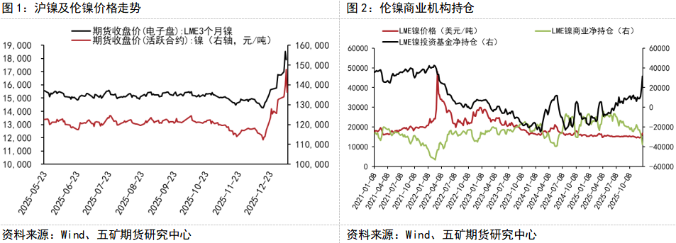 后视镜来看,近期镍价的大幅反弹本质上源自于商品普涨背景下,宏观资金大量涌入,扭转了过剩背景下产业资金不断挤压盘面导致的镍价下跌趋势行情。从LME持仓报告看,近期投资基金净多持仓显著增加。截至12月29日,伦镍商业机构持有净空头31633手,较上月同期空头敞口扩大11090手;投资基金持有净多头21014手,较上月同期多头敞口扩大10573手。