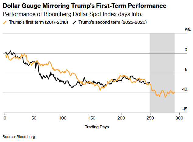 不过,在2025年上半年美元经历了自20世纪70年代初以来最深的一次下跌之后,随着特朗普撤回部分关税、经济持续运转,美元在下半年基本企稳。