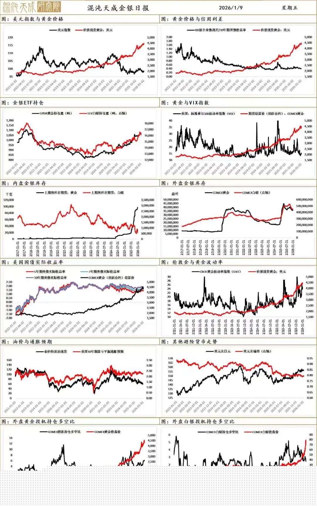 全球权益市场在开年的上行后明显走弱,美股和中国股市都有所降温,这是对流动性的相对抑制从而限制贵金属驱动。年初前两日的“开门红”行情放缓,且伴随机构配置盘逐步完成,进一步加速推动驱动有所下降。芝商所(CME)通知,称将于当地时间1月9日盘后,上调黄金、白银、铂金和钯金期货的跨期价差及相关价差合约履约保证金。提保再次对市场交易形成风险警示,过热的交易形成一定放缓。