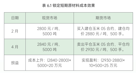 该企业通过期货买入保值,规避了玉米淀粉原材料价格上涨的风险,期货端盈利覆盖了现货端成本的上升。