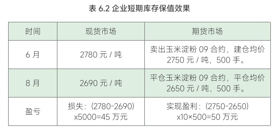 该企业通过期货卖出保值,规避了玉米淀粉库存贬值的风险,期货端盈利覆盖现货价格的下跌。