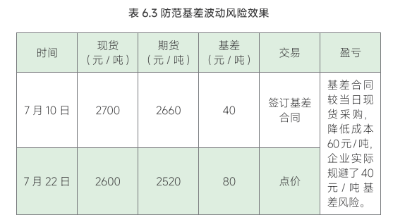案例评价:该企业实际规避了 40 元/吨基差风险。