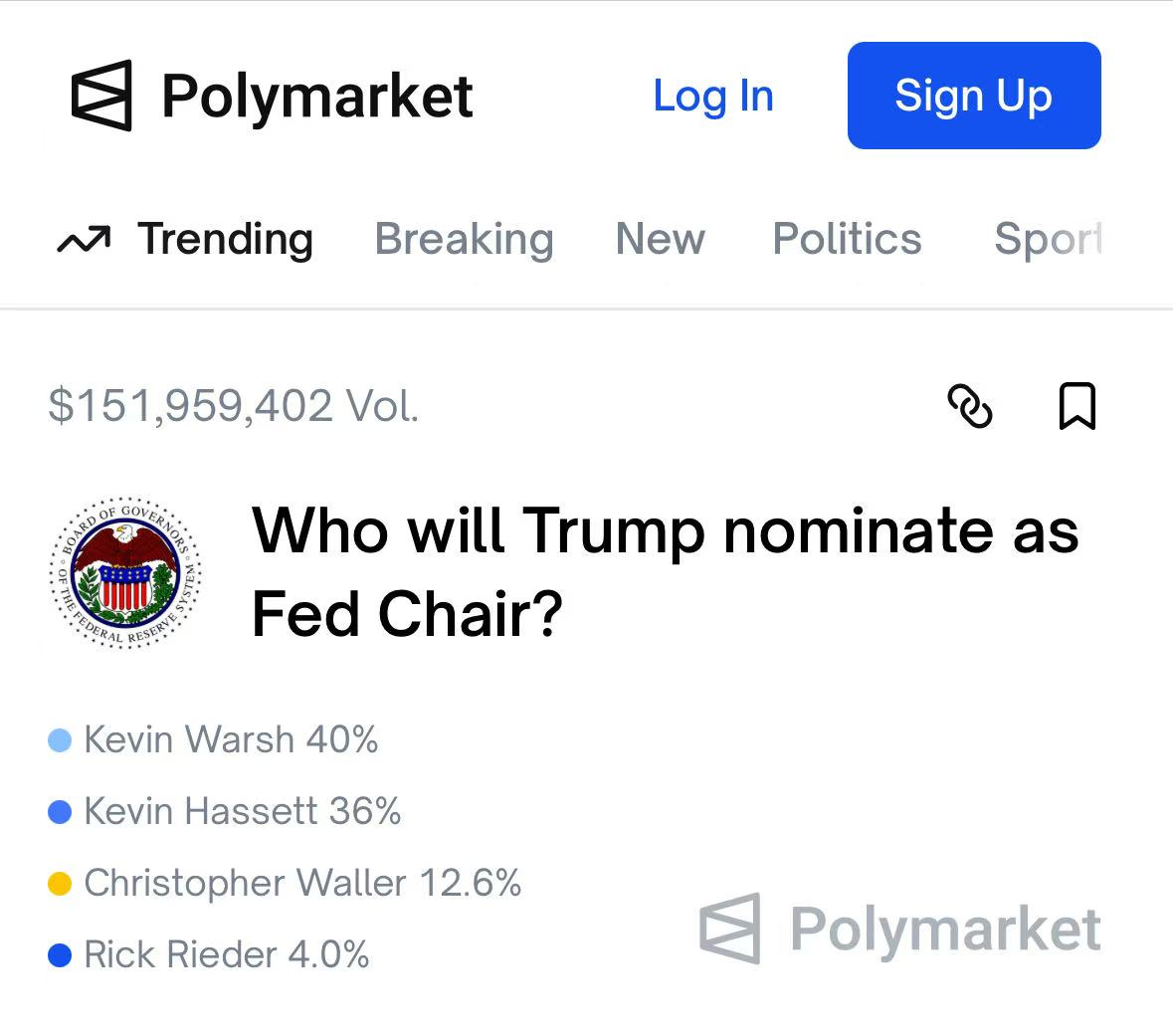 1月或宣布美联储主席提名决定,贝莱德高管尚未被面试当选概率仅4%
