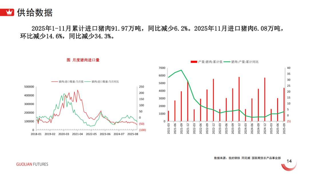 近期现货钢材市场进入供需均减少的弱平衡状态。一方面,冬季是传统的钢铁消费淡季,尤其是螺纹钢等建材需求降幅较大。当前,北方地区天气寒冷,加上全国大量地区出现严重雾霾,建筑工地施工大幅减少,对螺纹钢的采购量也显著缩减。另一方面,钢铁产量也在减少。据中钢协统计,12月中旬的钢铁产量较上旬继续下...