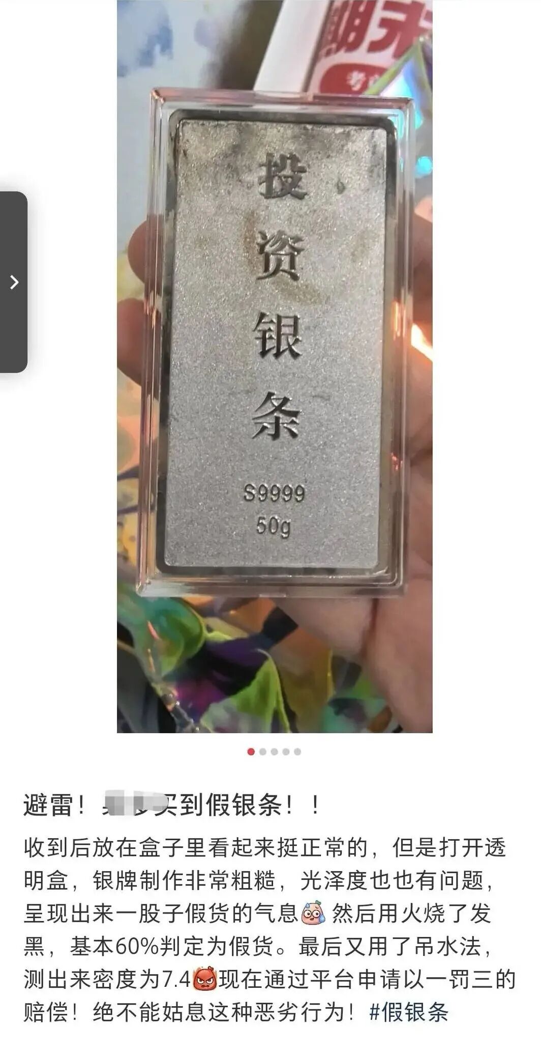 记者梳理微博、小红书、抖音等社交平台的相关话题发现,有许多关于网购白银遭遇骗局的吐槽,相关话题下的留言、分享累计超千条。发帖者既有试水小额投资的普通消费者,也有投入数十万的资深投资者;遭遇的问题除了假货泛滥、延迟发货,还包括货不对板、鉴定证书造假、平台售后推诿等。不少网友在评论区分享维权经验,也有人无奈表示“吃一堑长一智,再也不敢网购贵金属”。