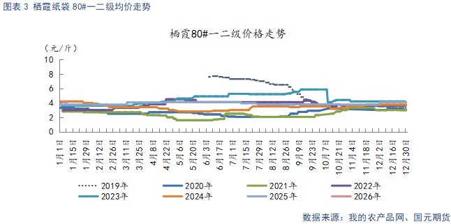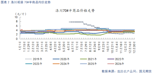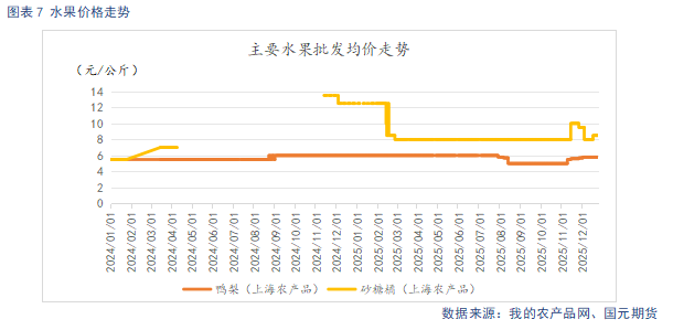生长期气候扰动下,使得本季库存呈现“量少质低”的特征。优质货源供应偏紧,直接推升交割端成本居高不下,为盘面价格提供了坚实的下方支撑。叠加春节备货期临近,市场对需求端的提振预期逐步升温,进一步强化了盘面的偏强运行态势。但需注意的是,当前库存结构中普通货源占比偏高的问题突出,在柑橘、梨等大宗水果集中上市的冲击下,这类普通货源面临显著的销售压力,春节消费旺季期间,其去库节奏或将承压,有降价走量以加速去库的预期。整体市场呈现明显的“以质论价”格局,优质果与普通果的价格分化态势持续凸显。综合来看,市场中长期基本面仍偏向强势,但短期受终端需求复苏节奏缓慢及替代水果竞争的压制,供需两端的博弈将加剧,预计盘面短期内以高位震荡走势为主。关注春节期间消费实际表现。