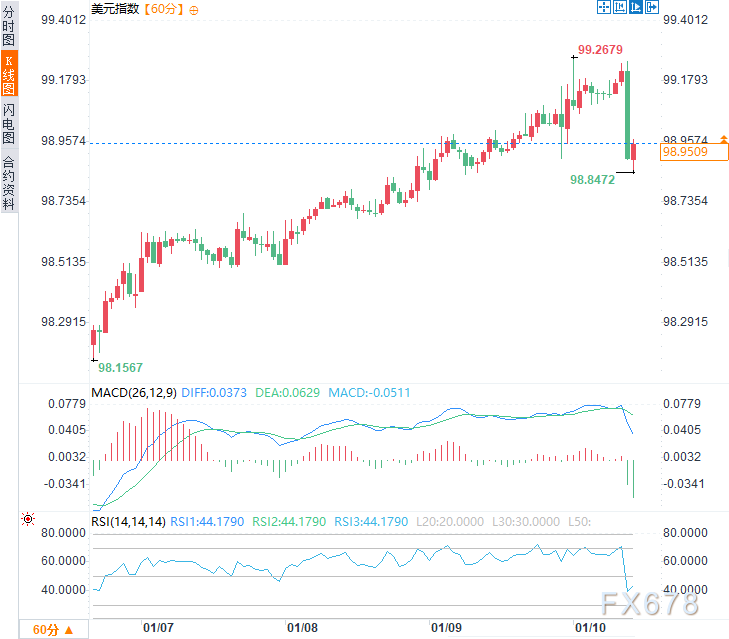 (美元指数小时图,来源:易汇通)