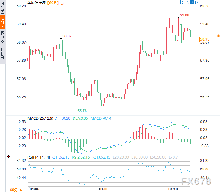 北京时间16:03,美原油连续现报58.96美元/桶。