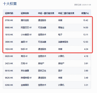 公开资料显示,港股互联网ETF(513770)及其联接基金(A类017125;C类017126)被动跟踪中证港股通互联网指数,权重股汇聚阿里巴巴-W、腾讯控股、小米集团-W、快手-W、哔哩哔哩-W等港股AI巨头,前十大权重股占比超78%,龙头优势显著。