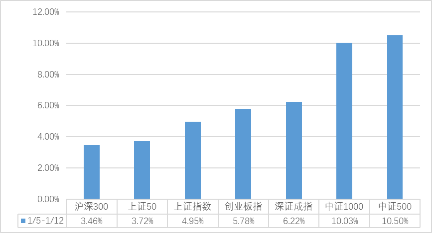 图1 A股主要指数涨跌幅(2026/1/5-2026/1/12)