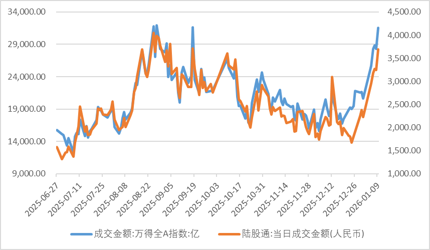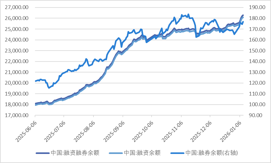 历年来A股市场普遍存在明显的春季行情,春季行情通常始于春节前夕,至两会召开后告一段落。2026年作为“十五五”开局之年,政策发力明显前置。2025年12月31日,国家发展改革委、财政部于2025年12月31日联合发布《关于2026年实施大规模设备更新和消费品以旧换新政策的通知》,提前下达2026年第一批超长期特别国债625亿元,专项支持“两新”政策,支持领域则在原有基础上,新增覆盖多项民生与安全支出。2026年1月12日,工信部等八部门于1月12日联合发布《“人工智能+制造”专项行动实施意见》,明确到2027年建成全球领先的AI与制造业融合生态。同时,我国向国际电信联盟(ITU)提交超20万颗低轨卫星频轨资源申请,从国家战略层面为商业航天、卫星制造、地面终端等产业链迎来强支撑。在政策的催化下,人工智能与航空航天板块涨幅明显,2026年前六个交易日,中证人工智能指数与国证航天航空指数涨幅分别达到10.54%、21.82%。此外,今年春节假期与全国两会召开时间临近,也催化增量资金提前进场布局,截至1月9日当周,北向资金成交再度活跃,2026年第一个交易周合计成交16357.54亿;融资余额进一步上升,突破2.6万亿,录得26099.35亿。政策靠前发力配合增量资金进场,为2026年初A股春季行情提前开启产生关键作用。