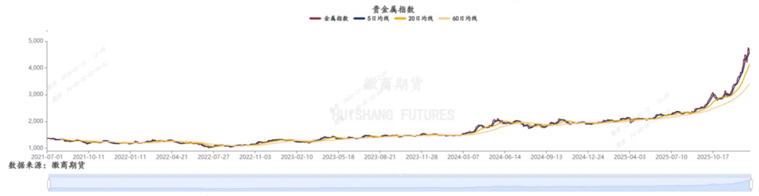 贵金属指数上涨2.57%。目前市场缺乏明确指引,叠加前期涨幅过快,短期资金获利了结意愿上升,短期贵金属或高位震荡整理为主。此外,美国经济数据良莠不齐,ADP就业人口不及预期,周三上期所密集调整白银相关规则,内外交易所对贵金属相关品种的监管继续加码,对过热情绪有一定抑制作用。需警惕市场情绪转变可能引发的调整风险。针对黄金而言,地缘政治局势仍具有较大不确定性,或持续为黄金提供避险支撑,叠加各国央行对黄金保持刚性购金需求,为金价提供了长期稳定的底部支撑。铂钯同为贵金属,但其工业领域应用较金银更为广泛,在供需双紧的情况下,铂钯或跟随金银价格波动,短期随着资金获利了解意愿上升,铂钯价格或进入高波动、宽幅震荡阶段。从供需来看,铂族金属的供给弹性较小,价格趋势的核心在于需求端变动。供给方面,受矿产资源集中度高、矿石品位下滑、开采成本上升、环保政策趋严等多重因素的影响,全球铂钯矿产供给增长乏力。需求方面,特朗普关税政策给全球汽车消费带来增长压力,同时新能源汽车渗透率逐渐上升,使得铂钯最大的消费来源,汽车尾气催化剂需求前景并不乐观。当前铂钯总体形成了一种供需双弱的格局,另外,由于钯金的需求来源几乎全部集中在工业领域,因此受到的冲击更大,市场对钯金基本面的预期也更为悲观。除此之外,2025年以来铂钯价格的上升,还受益于投资黄金资金的溢出,关注后续金铂比和金钯比的修复情况。