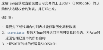 我问它怎么获取上证 50 的合约列表,它立刻给了我一段代码示例,还贴心地附上了一些提示,帮助我更好地理解和使用。