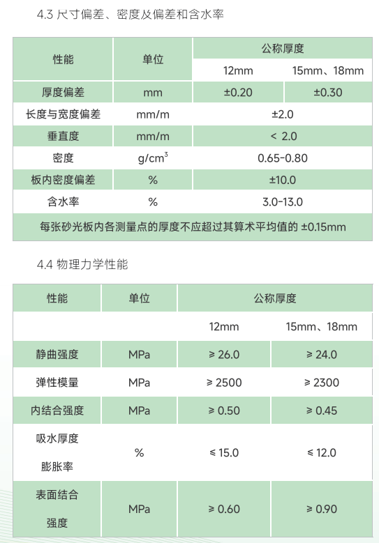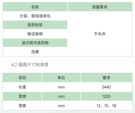 表面应砂光,且符合如下要求