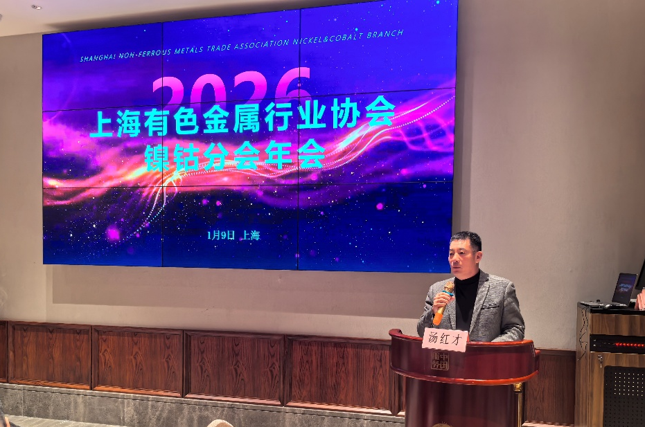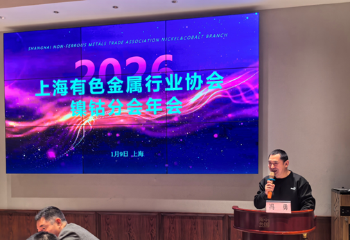 2026年1月9日,上海有色金属行业协会镍钴分会年会圆满召开,近60位分会会员围绕镍产业出海布局、钴供应链重构、市场行情走势等核心议题展开深度研讨,以凝聚共识,共谋镍钴行业高质量发展擘画蓝图。上海有色金属行业协会秘书长刘秋丽、常务秘书长许寅雯应邀出席。会议由镍钴分会秘书长冯勇主持。