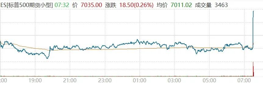 数据公布后,截至北京时间21:50左右,美股三大期指直线拉高,全数翻红。