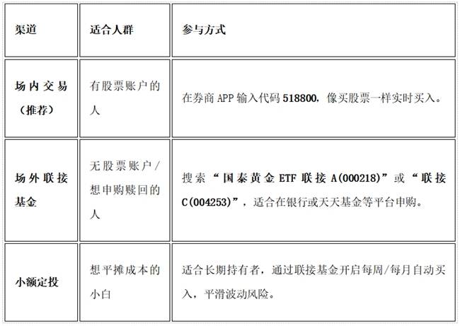 “省”:极致的持有成本。实物金饰溢价通常在$10%$-$20%$,而518800的管理费和托管费每年合计仅约0.6%(具体以实时公告为准)。此外,二级市场买卖免征印花税,摩擦成本极低。二、投资黄金基金ETF(518800)的三种“姿势”