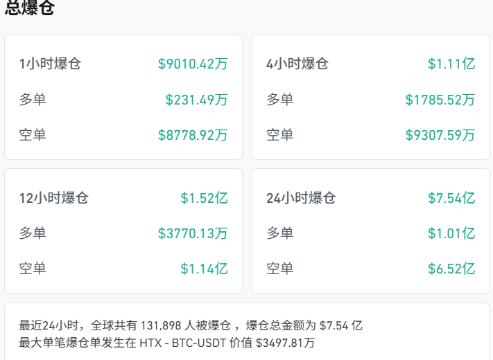 加密货币市场大幅反弹,截至22:52,比特币涨超4%,以太坊涨近6%。近24小时全球超13万人被爆仓,目前爆仓人数还在持续扩大。