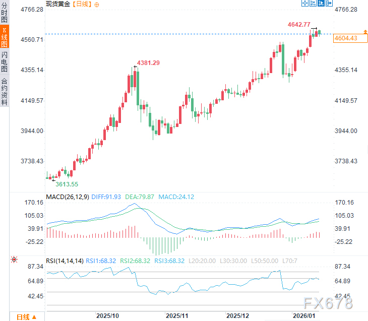 汇通财经APP讯——美国总统唐纳德·特朗普断言,阻碍潜在和平协议达成的主要是乌克兰,而非俄罗斯。与欧洲盟友的立场截然不同,特朗普暗示莫斯科已准备好结束冲突,而基辅方面却仍持犹豫态度。短期看,特朗普立场变动降低了冲突升级风险,对黄金构成利空。周四(1月15日)亚市时段,现货黄金震荡下行,一度下跌0.92%至4583美元/盎司,但仍有逢低买盘提供支撑,目前回升至4610美元附近,日内跌幅约0.3%。