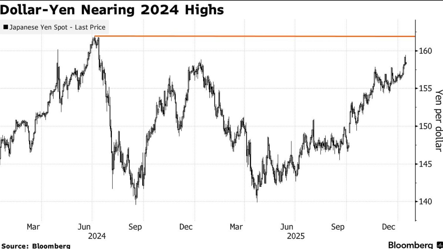 据了解,日元兑美元周三一度刷新18个月低点,财务大臣与外汇事务主管随即再次发出干预警告。与此同时,经济安保担当大臣高市早苗宣布计划提前举行大选,此举进一步强化了市场对美元兑日元持续走高的预期——投资者普遍认为,若自民党在此次选举中获得多数席位,日本政府将获得推进扩张性财政与货币政策的新授权,从而可能加剧日元贬值压力。日元兑美元汇率周三收盘上涨0.4%至158.46水平。