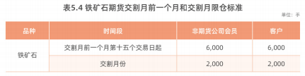 铁矿石合约交割月份以前的月份涨跌停板幅度为上一交易日结算价的4%,交割月份的涨跌停板幅度为上一交易日结算价的6%。当合约出现连续停板时,交易所将提高涨跌停板幅度。
