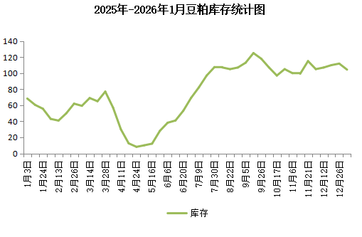 库存:2025下半年开始,7月豆粕库存持续高位,8月更是突破100万吨。9月豆粕库存持续110万吨以上,中旬更是高达120多万吨。十一过后,库存数量下滑,重回100万吨以下。11月开始,豆粕库存持续110万吨一线。12月,豆粕库存处于110万吨左右。库存居高不下,到了2026年1月初,库存数量有所下降,回到100万吨左右,但整体库存仍处高位。