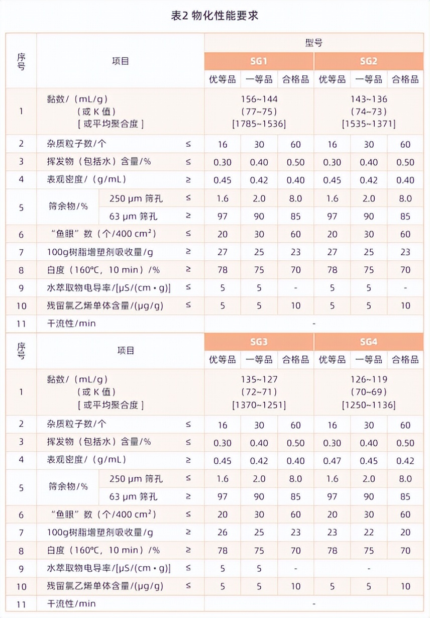 聚氯乙烯期货合约标准质量标准符合国家标准《悬浮法通用型聚氯乙烯树脂(GB/T 5761-2018)》的SG5型一等品(干流性指标不做要求)。优等品作为替代品允许交割,优等品和一等品之间不设等级升贴水。