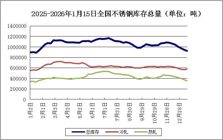 本周不锈钢库存合计92.72万吨,较上周下跌2.22%,其中,冷轧库存上涨,热轧库存下跌。