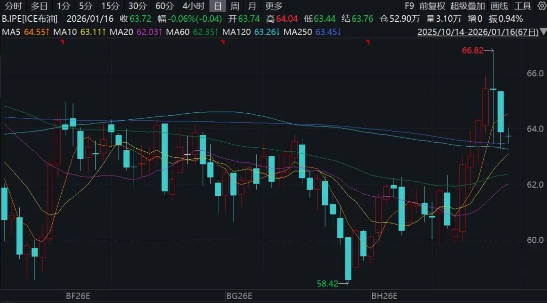 经历前期显著上行后,近两日原油价格出现回调。1月16日,国内期货市场原油主力合约2603跌超3%,国际原油价格也再度回落至60美元/桶下方。