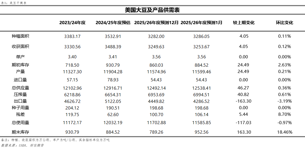 从全球平衡表上来看,1月USDA供需报告整体偏空,总供应量上调320万吨、压榨上调119万吨、国内消费上调129万吨、贸易量下调23万吨、期末库存上调204万吨,供应压力预计增大。