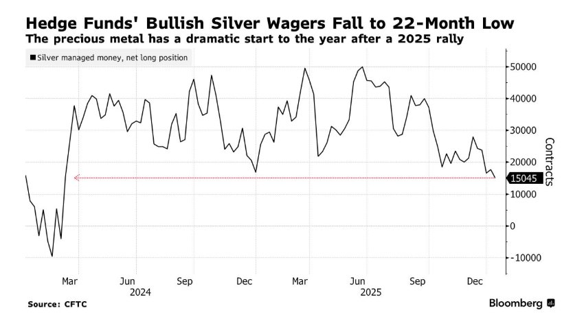 银价来到变盘临界点?投机仓位大举撤离至22个月低点白银“牛市叙事”遭遇重创