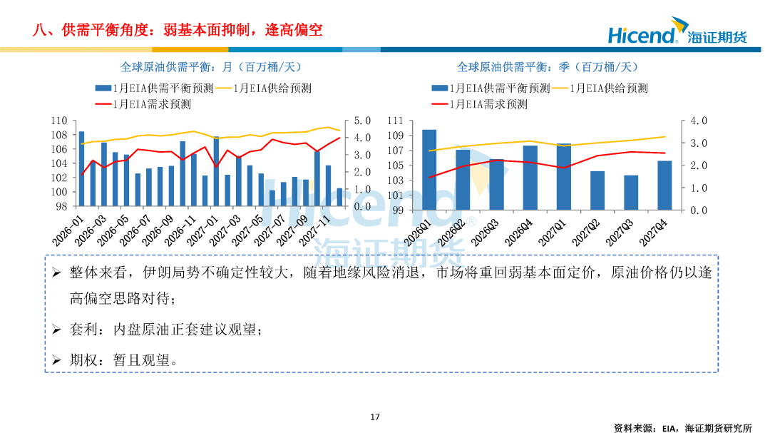 整体来看,伊朗局势不确定性较大,随着地缘风险消退,市场将重回弱基本面定价,原油价格仍以逢高偏空思路对待;