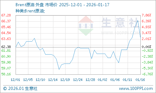 地缘溢价消退叠加库存施压,国际原油价格重挫终结五日连涨,1月15日,美国WTI原油期货3月合约结算价报59.08美元/桶,跌幅2.80美元或4.5%。布伦特原油期货3月合约结算价报63.76美元/桶,跌幅2.76美元或4.1%。