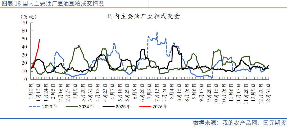 【上周美国对中国装运90.1万吨大豆同比增长66%】美国农业部出口检验周报显示,截至2026年1月8日当周,美国对中国(大陆地区)装运大豆90.1万吨,占该周总量的58.9%,同比增长66%;前一周装运大豆39.7万吨。