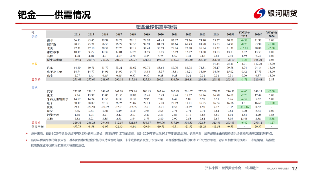 铂和钯的价格最核心受供需关系驱动,尤其是来自汽车工业的催化剂需求,以及矿产供应端的波动。其中,钯金的供需矛盾比铂金更突出,这也是钯金价格历史上多次大幅上涨的主要原因。1️⃣供需关系是根本驱动力...