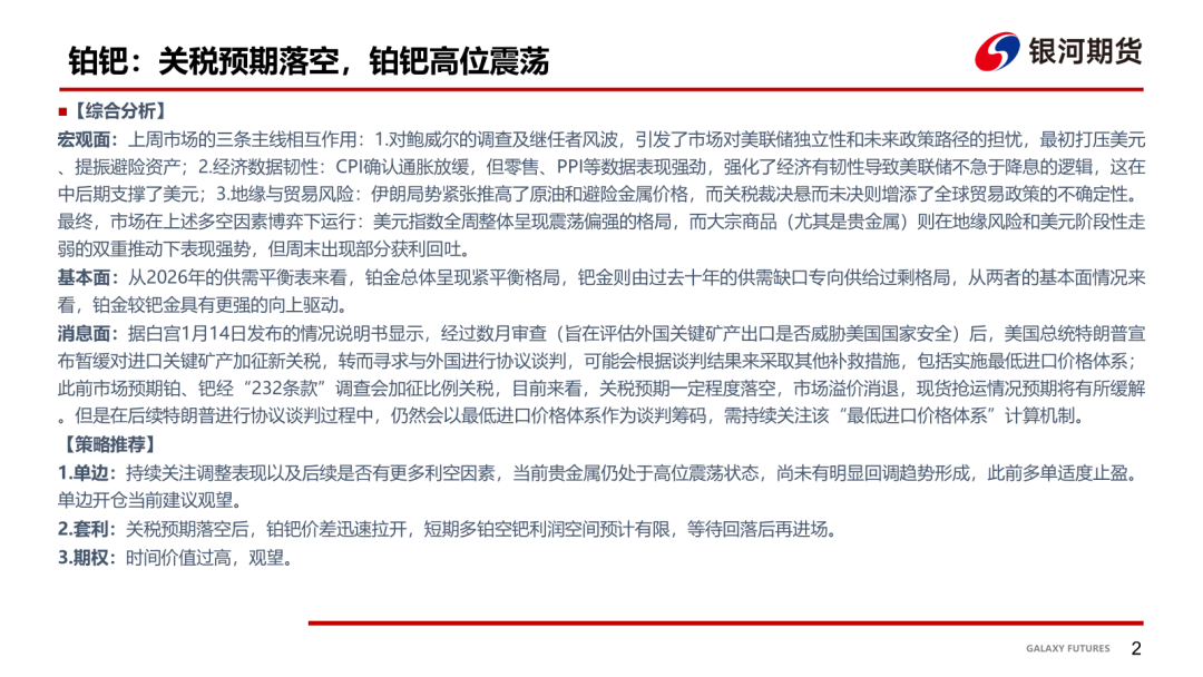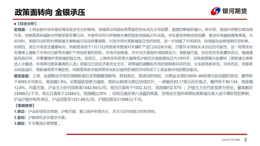【贵金属周报】金银:政策面转向金银承压;铂钯:关税预期落空铂钯高位震荡