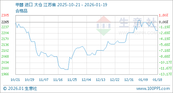 1月19日,生意社甲醇基准价为2220.00元/吨,与本月初(2207.50元/吨)相比,上涨了0.57%。