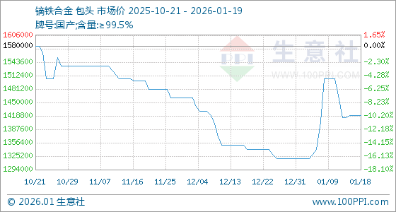 1月19日生意社镝铁合金基准价为1420000.00元/吨