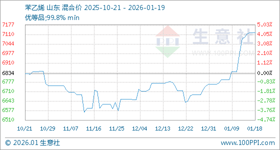 1月19日生意社苯乙烯基准价为7122.00元/吨