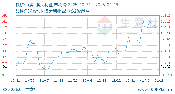 1月19日生意社铁矿石(澳)基准价为833.89元/吨