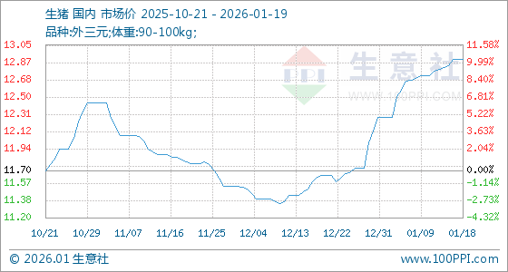 1月19日生意社生猪基准价为12.90元/公斤