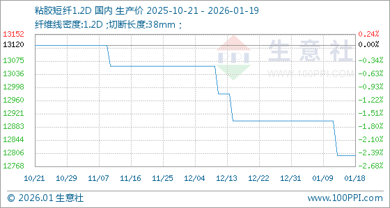 1月19日生意社粘胶短纤1.2D基准价为12800.00元/吨