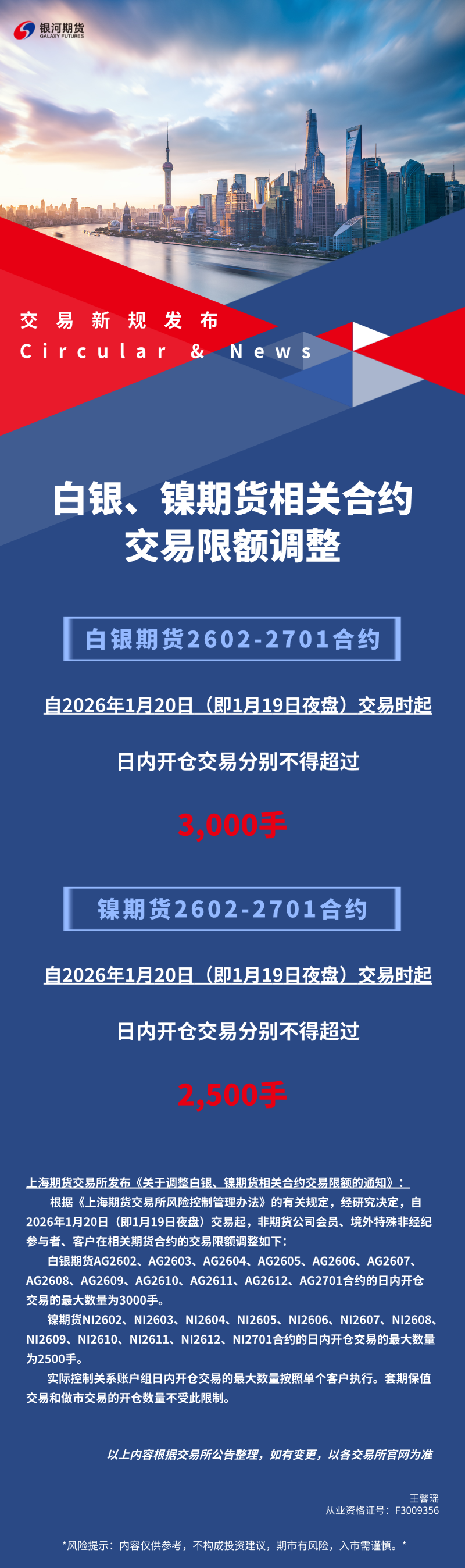 【交易新规发布】白银、镍期货相关合约交易限额调整