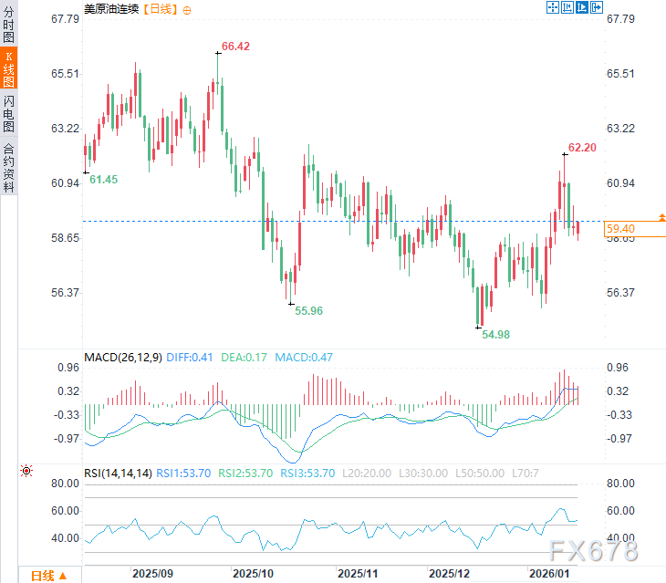 俄乌冲突最新进展于市场情绪上短期限制原油价格涨幅,因为它提供了一个“冲突可能降温”的想象空间。周一(1月19日)亚市时段,美原油价格于每桶59.40美元附近窄幅震荡。