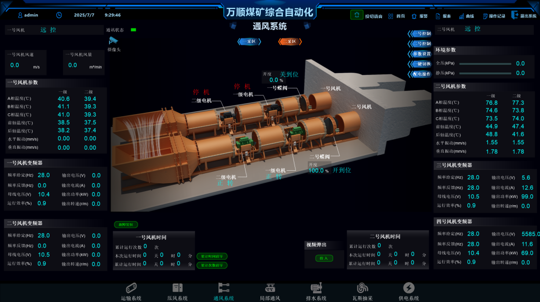 万顺煤矿智能化建设项目主要涵盖万兆环网、网络安全、空压机系统、局部通风机系统、信息引导系统及管控平台系统。通过上述系统的建设,实现了基础设施集约化、生产流程高效化、辅助系统自动化与整体发展智能化的目标。